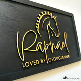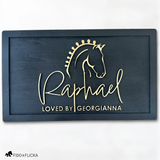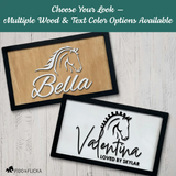 Choose from three distinct horse designs — Classic, Majestic, or Show Horse — and two elegant fonts, allowing you to create a look that reflects your horse’s unique spirit. Whether displayed in a private barn, professional stable, or as a heartfelt gift, this modern nameplate brings meaning and sophistication to every space it graces.