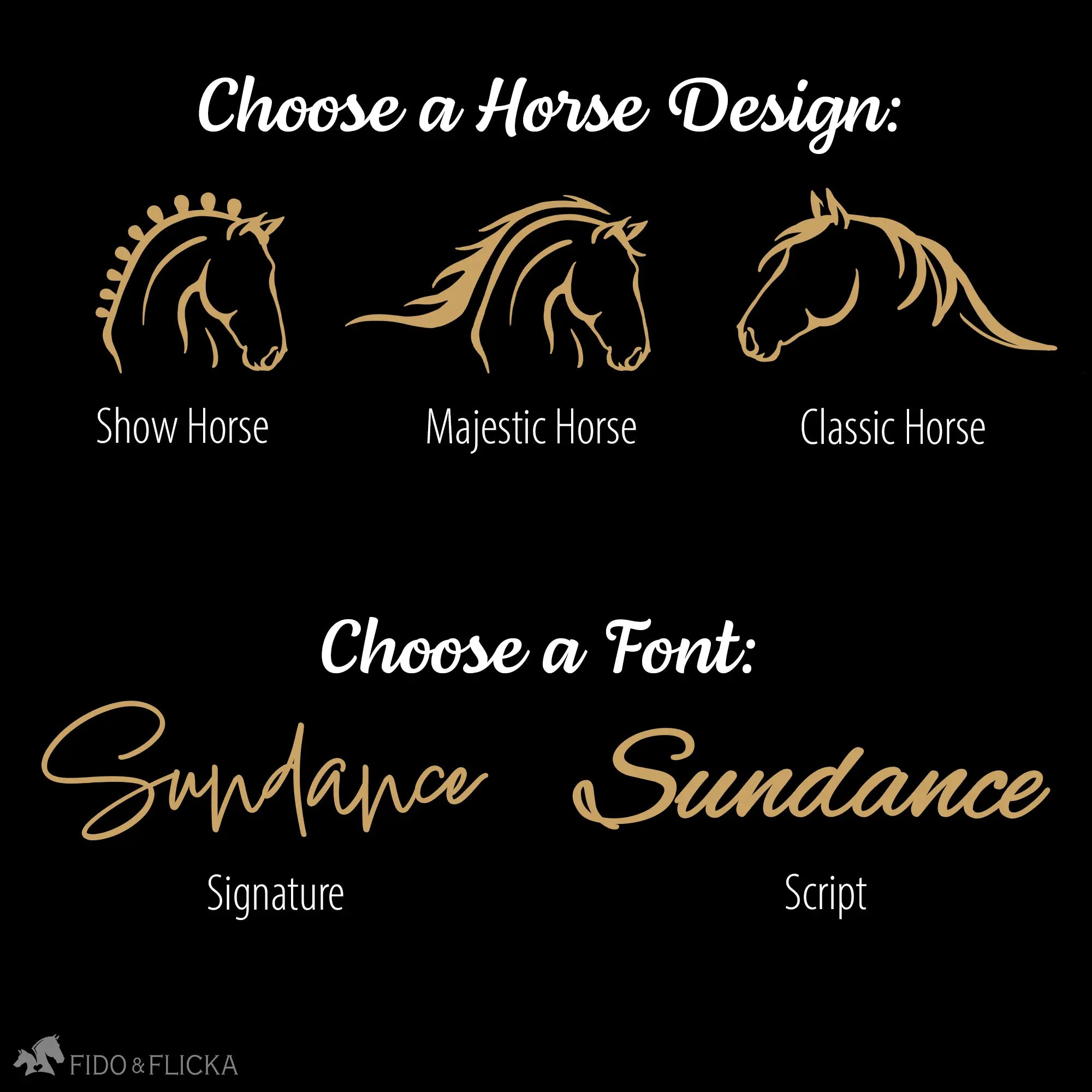 Horse design options: Show Horse, Majestic Horse, or Classic Horse.