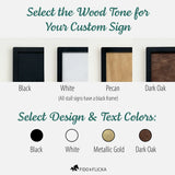 Design and text color options: Signature Gold, Black, White, or Dark Oak.