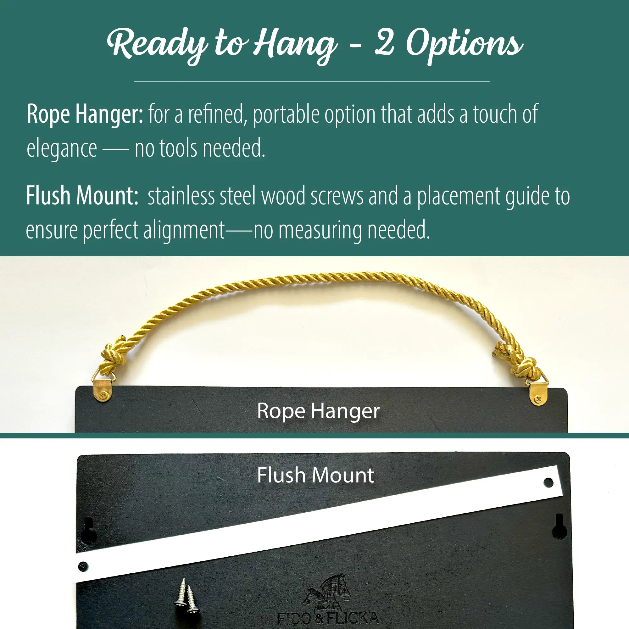 - Select Flush Mount (with wood screws) for a clean, secure look that sits flat against the wall — perfect for stalls or home display.